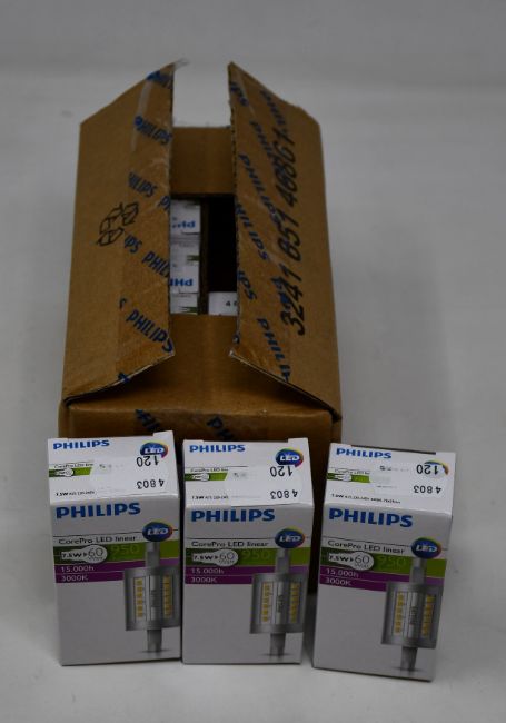 Ten boxed as new Philips CorePro r7s 118mm 14-100w 830 D lamps.