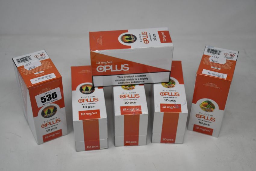 Six boxes of ten (10ml) OPLus E-Liquid in Fruit Mix and American Blend 12mg/ml (Over 18s only).