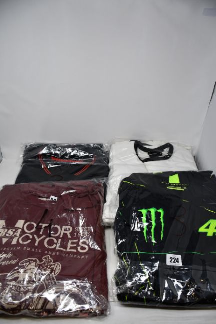 Fifteen assorted as new motorcycle T-shirts to include Triumph, VR 46, BMW and Suzuki (Four styles, assorted sizes).