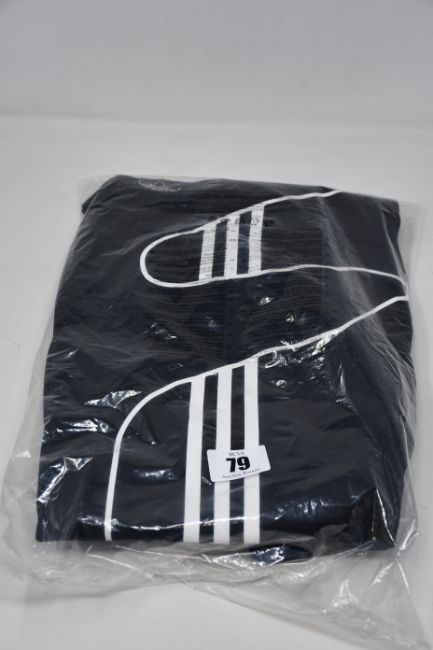 Two pairs of as new Adidas Strike track pants (L) and three Strike track jackets (L).
