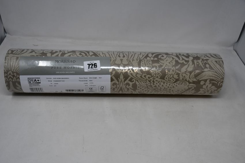One boxed as new Morris & Co. Pure Strawberry Thief Wallpaper, Taupe/Gilver (DMPU216019).