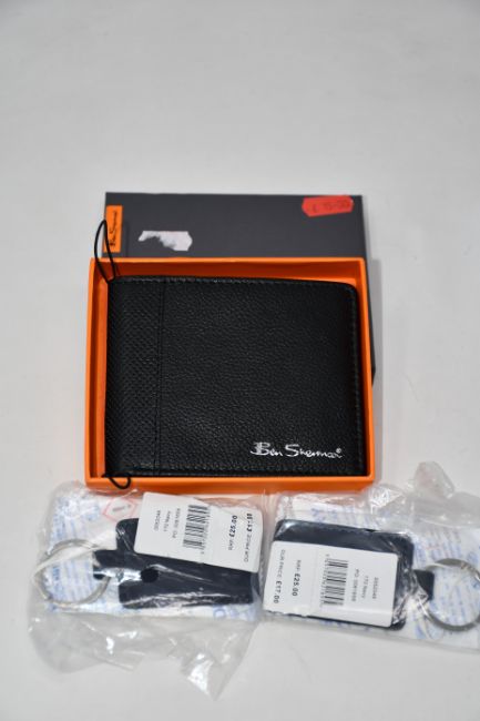 Eleven as new Ben Sherman leather wallets together with twelve Ben Sherman leather key fobs.
