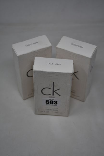 Three boxed as new Calvin Klein One eau de toilette (100ml) (Dust marks to outer boxes).