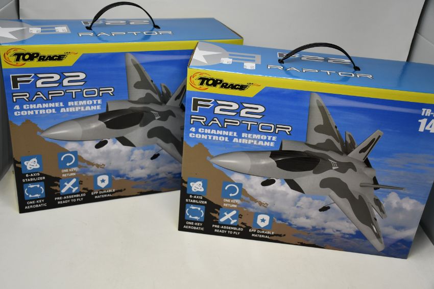Two boxed as new Top Race F22 Raptor 4 channel remote control airplanes (TR-F22B).