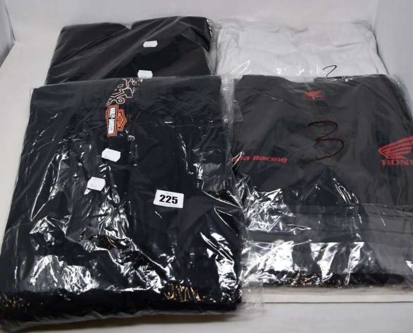 Fifteen assorted as new motorcycle T-shirts to include Triumph, Harley Davidson, BMW and Honda (Four styles, assorted sizes).