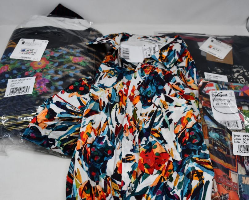 Four items of as new Desigual clothing; women's Gala top (UK 14), Asher shirt (XL), Phoebe T-shirt (XL) and women's German top (UK 14).
