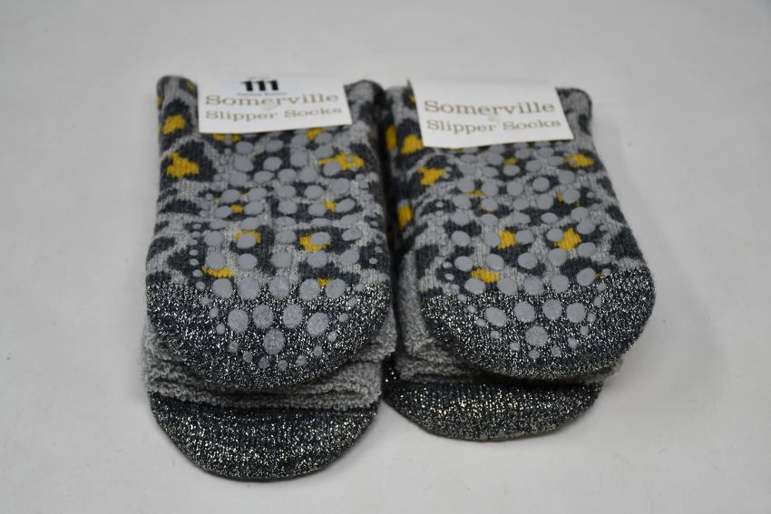 Ten pairs of as new Somerville Leopard slipper socks in grey/yellow (One size - RRP £20 each).