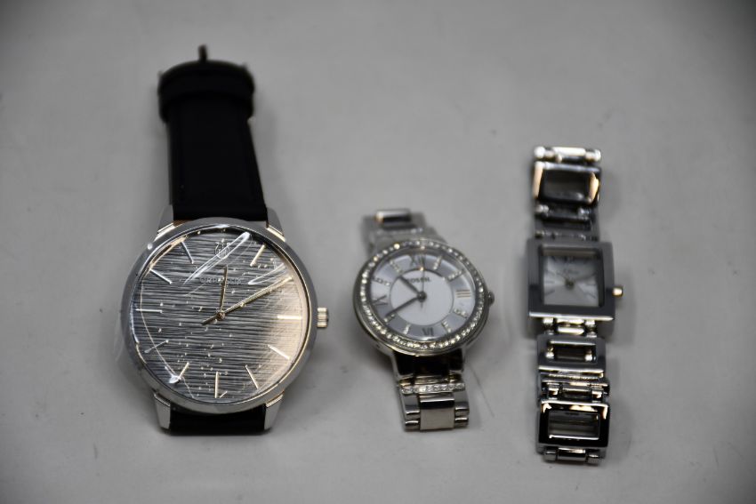 A ladies pre-owned Fossil Virginia watch (ES3282), a ladies pre-owned S. Oliver Analogue quartz watch (SO-3023-MQ) and a men's as new Orphelia watch (61903).