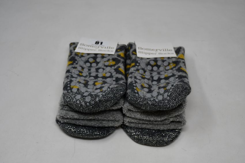 Ten pairs of as new Somerville Leopard slipper socks in grey/yellow (One size - RRP £20 each).