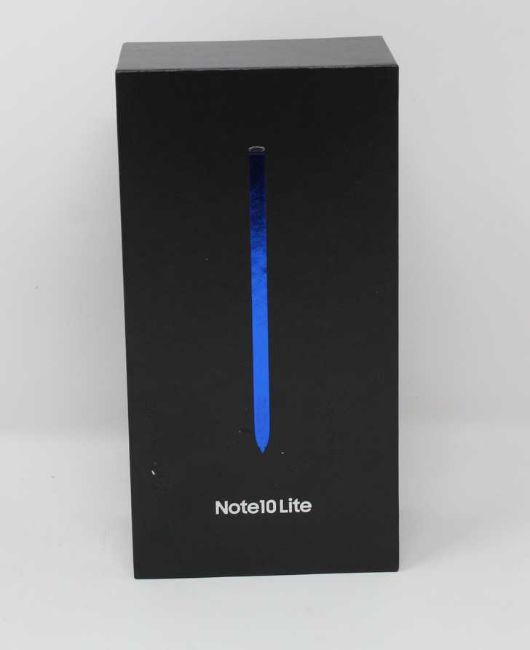 A boxed as new Samsung Note 10 Lite SM-N770F/DS 128GB in Aura Black (Requires UK Plug Adaptor) (Box sealed, some cosmetic damage to box).