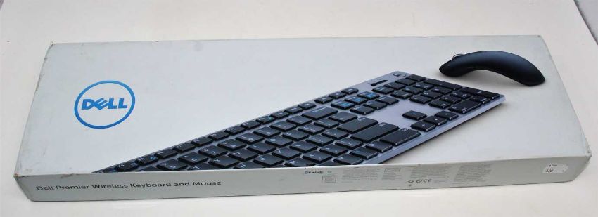 A boxed as new Dell KM717 Premier Keyboard And Mouse Set (QWERTY - UK) (Box sealed, some cosmetic damage to box).