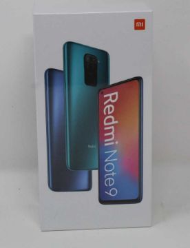 A boxed as new Redmi Note 9 Android Mobile Phone 4GB RAM 128GB Storage in Forest Green (Box sealed) (Requires UK Plug-USB Adaptor, not supplied).