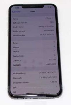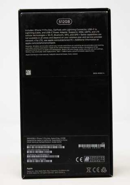 An as new Apple iPhone 11 Pro Max (Global/A2218) 512GB in Space Grey (Box, USB-C to Lightning cable and Earpods included. No Plug. Some cosmetic damage to box) (Checkmend report ID: CM16767662-E9071).