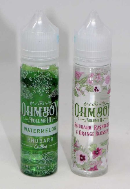 Five as new bottles of Ohm Boy Volume II Rhubarb, Raspberry & Orange Blossom Botanicals E-Liquid 0mg 50ml and nine as new bottles of Ohm Boy Vol III Watermelon & Rhubarb Chilled E-Liquid 0mg 50ml (Over 18's only).
