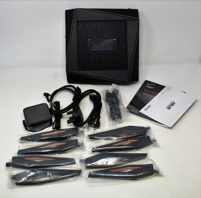 An ASUS GT-AX11000 ROG Rapture 802.11ax Tri-Band Gaming Router (No box, appears unused).