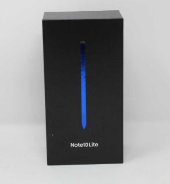 A boxed as new Samsung Note 10 Lite SM-N770F/DS 128GB in Aura Black (Requires UK Plug Adaptor) (Box sealed, some cosmetic damage to box).