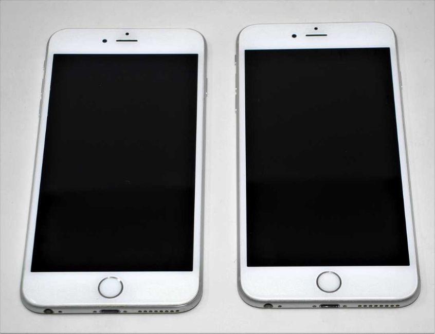 SOLD FOR PARTS ONLY: A pre-owned Apple iPhone 6 Plus (Global/Sprint/A1524) and a pre-owned Apple iPhone 6s Plus (Global/A1687) (Both iCloud locked. Sold for parts only).