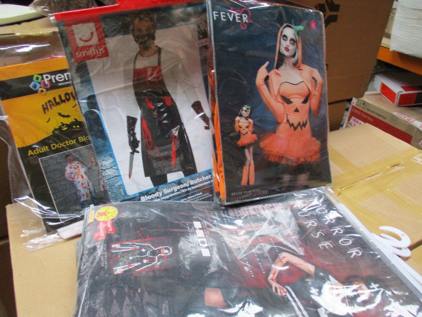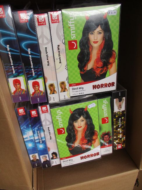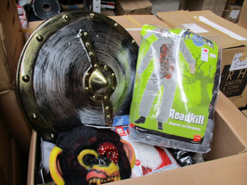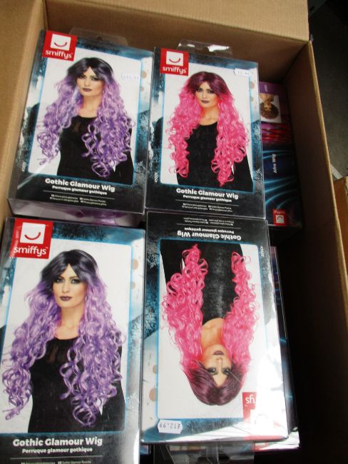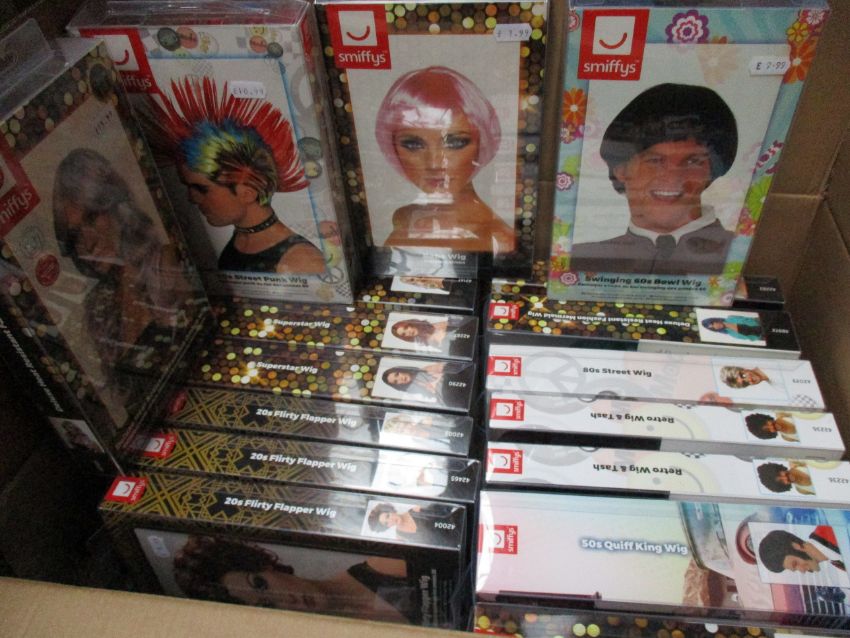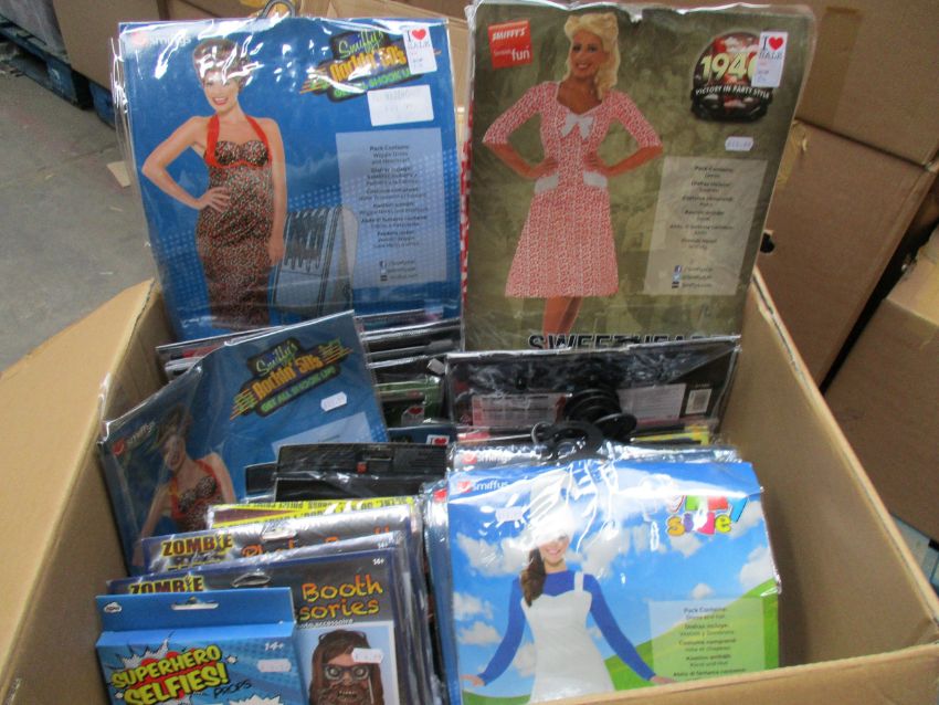 Assorted stock from a fancy dress and party store; Costumes and accessories by Smiffys, Fever and Wicked etc. Costumes to include Christmas, decades, horror, animals and fairytale. Accessories to include wigs, pirate accessories, Halloween decor/scene setters, fangs, makeup and piñatas.