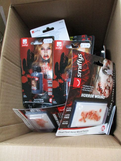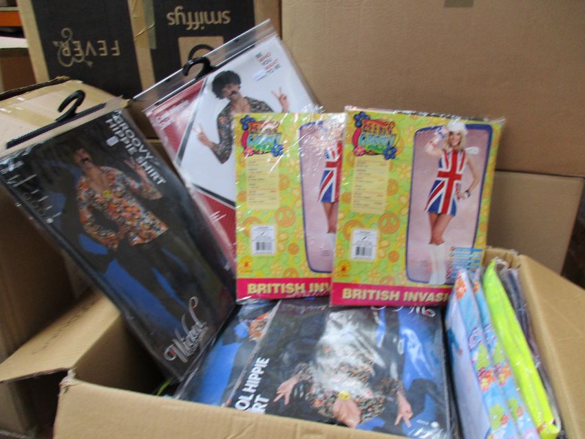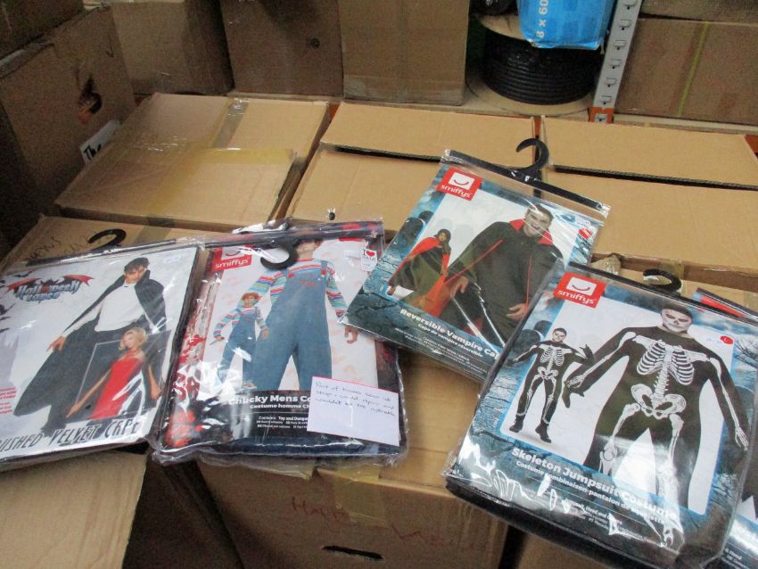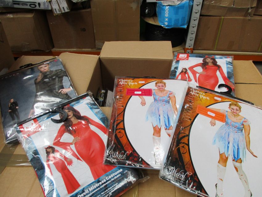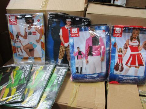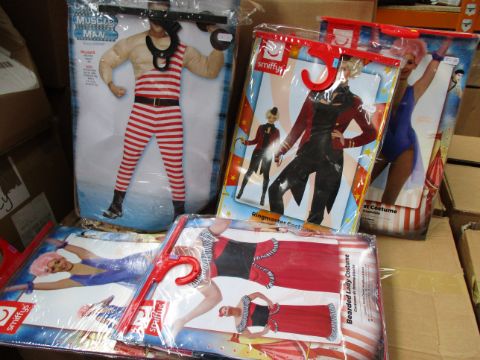 Assorted stock from a fancy dress and party store; Costumes and accessories by Smiffys, Fever and Wicked etc. Costumes to include TV and film, international costumes, animals, morph suits, adults and children's Halloween, Santa suits, novelty costumes, circus and 60's. Accessories to include fake blood/wounds, rubber masks etc.