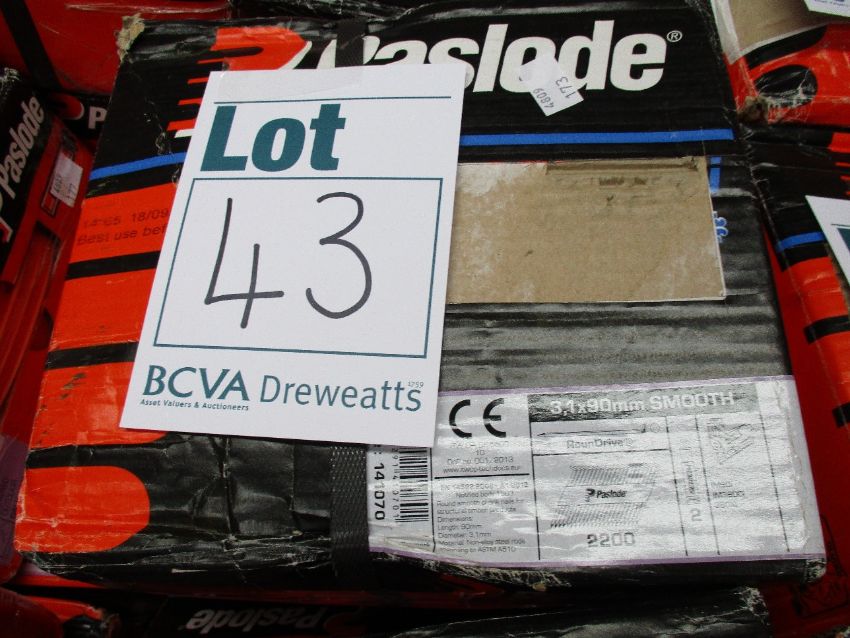 Four Paslode 141070 3.1 x 90mm Round Smooth Shank Nails x 2200 with 2 Fuel Cells (Some cosmetic damage to boxes).