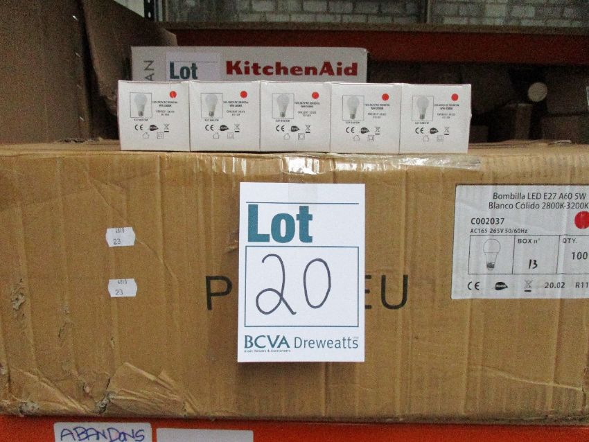 A quantity of Bombilla LED E27 A60 5W screw in light bulbs (Approximately 100 items).