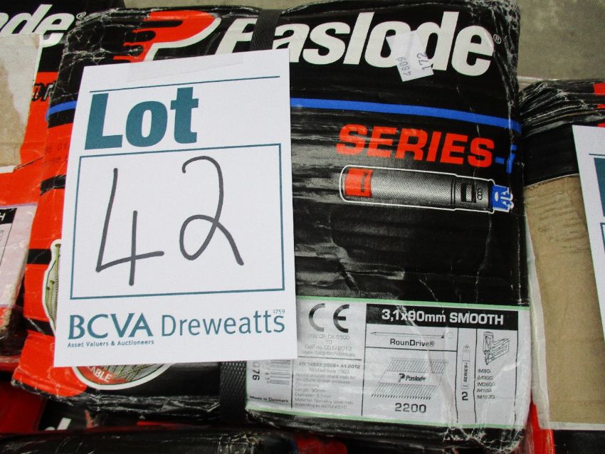 Four Paslode 141076 3.1 x 90mm Round Smooth Shank Nails x 2200 with 2 Fuel Cells (Some cosmetic damage to boxes).