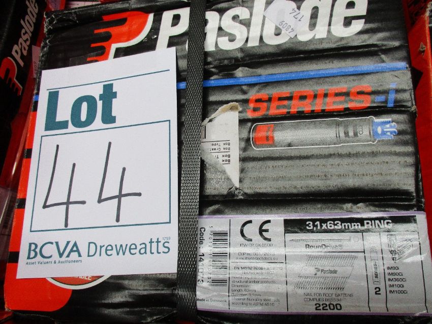 Four Paslode 141073 3.1 x 63mm Round Ring Shank Nails x 2200 with 2 Fuel Cells (Some cosmetic damage to boxes).