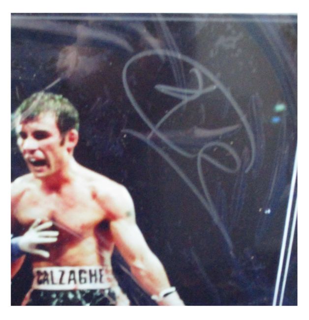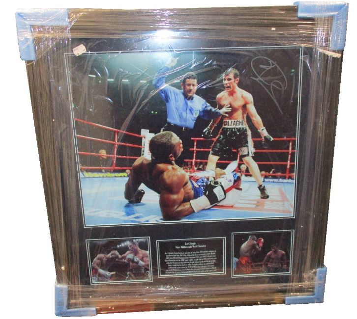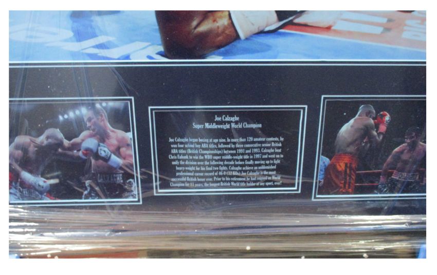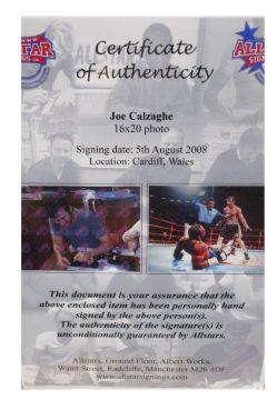 One as new AllStar Signings Joe Calzaghe signed photo (Vs Jeff Lacy with certificate of authentication on rear (Size: 16 × 20 photo).