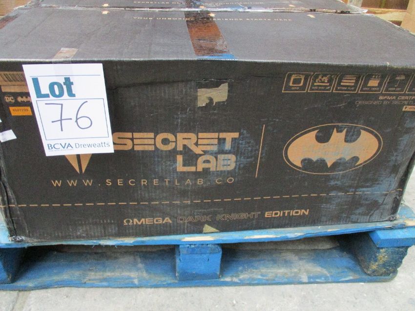 A boxed Secret Lab Omega Dark Knight Edition gaming chair.