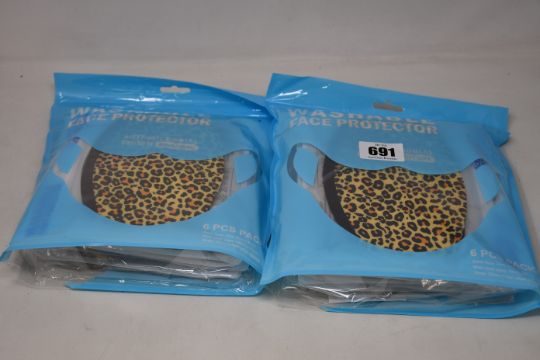 Forty two packs of six as new Leopard Print washable Face Protectors (Adult size).