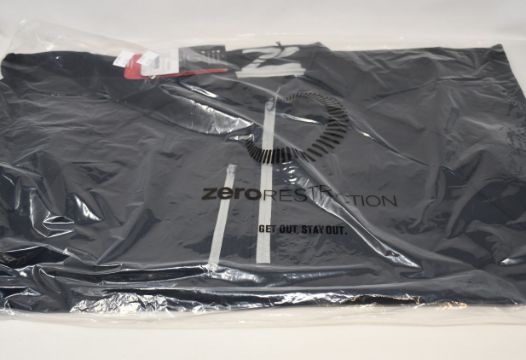 A men's as new Zero Restriction Z500 1/4 Zip Pullover in black/metallic silver (Medium).