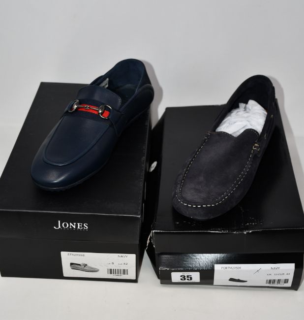 A pair of as new Jones Bootmaker Mallory loafers (UK 8 - RRP) and Driver loafers (UK 10 - RRP £79).