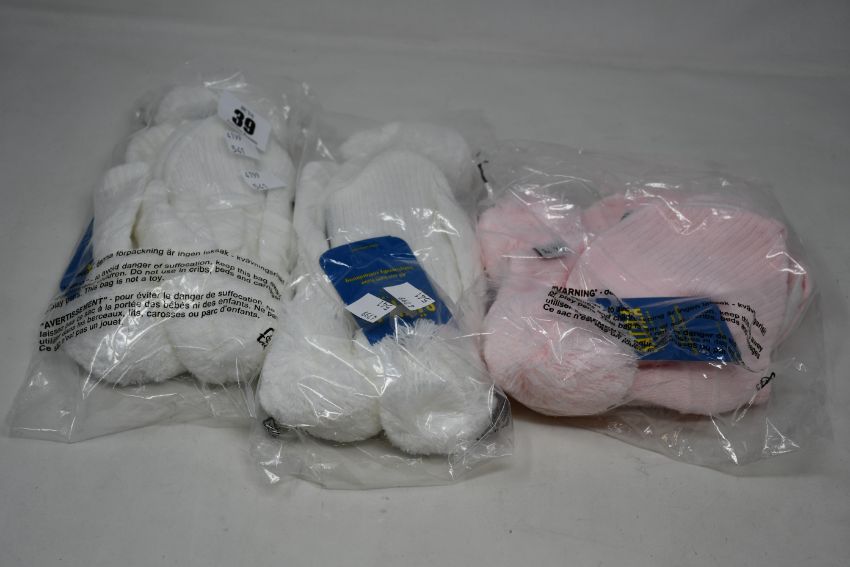 Nine children's as new Satila Tiny hats in white and soft pink (Size 35).