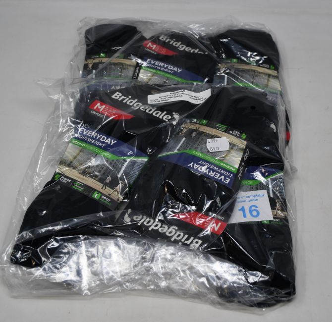 Eleven packs of three pairs of Bridgedale Unisex Everyday Lightweight Performance Socks in black (M).