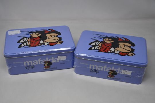 Four Mafalda Collection by Quino: Eleven volumes in a can (Limited edition, three sealed one unsealed, Spanish).