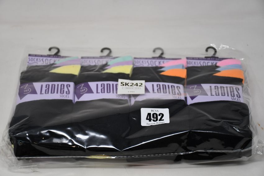 A large quantity of ladies as new colour contrast socks (Approximately 130 packs of 3).