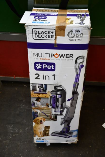 One boxed Black + Decker multipower pet cordless vacuum cleaner.