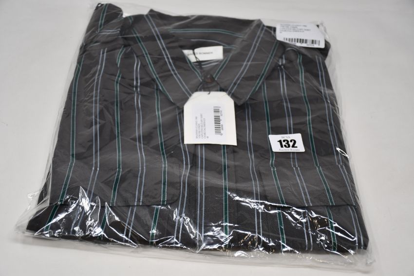 An as new Wales Bonner Capleton military shirt in charcoal/emerald viscose stripe (Size 48 - RRP £300).