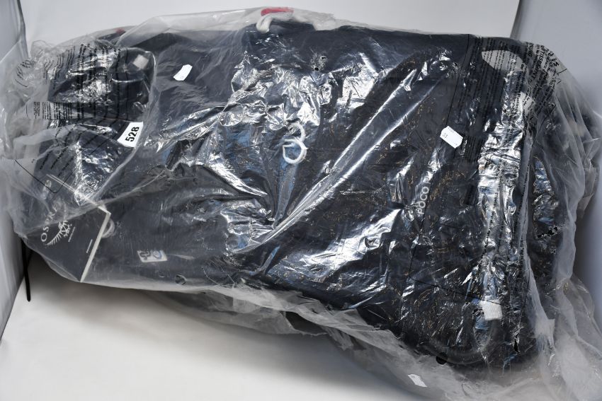 One Osprey Poco Plus child carrier with integrated sunshade and raincover in black.