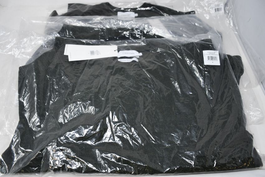 Three as new Calvin Klein superior wool crew neck sweaters in dark olive (All L - RRP £53 each).