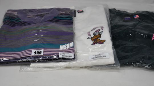 Three as new Insomniac LTD T-shirts; Noise (L - RRP $60), Wizard (L - RRP $50) and World Sunburst (L - RRP $65).
