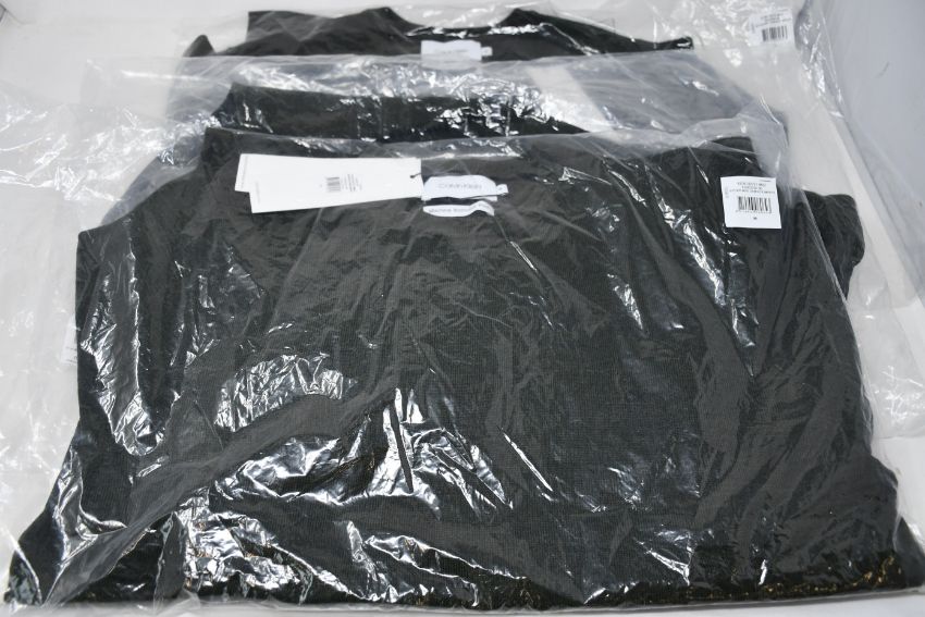 Three as new Calvin Klein superior wool crew neck sweaters in dark olive (All L - RRP £53 each).