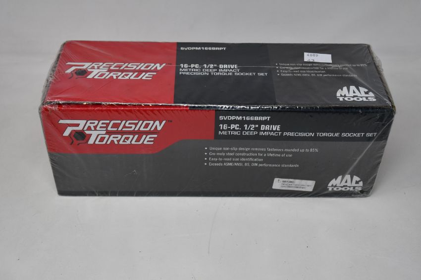 A boxed as new MAC Tools SVDPM166BRPT 16-PC. 1/2" Drive Metric Deep Impact Socket Set.