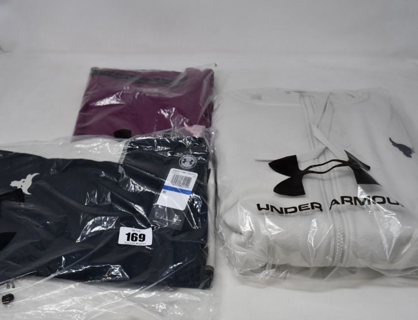 Three items of women's Under Armour Planet Rock clothing; ankle leggings (XL - RRP £55), T-shirt (XL - RRP £35) and fleece (XL - RRP £75).