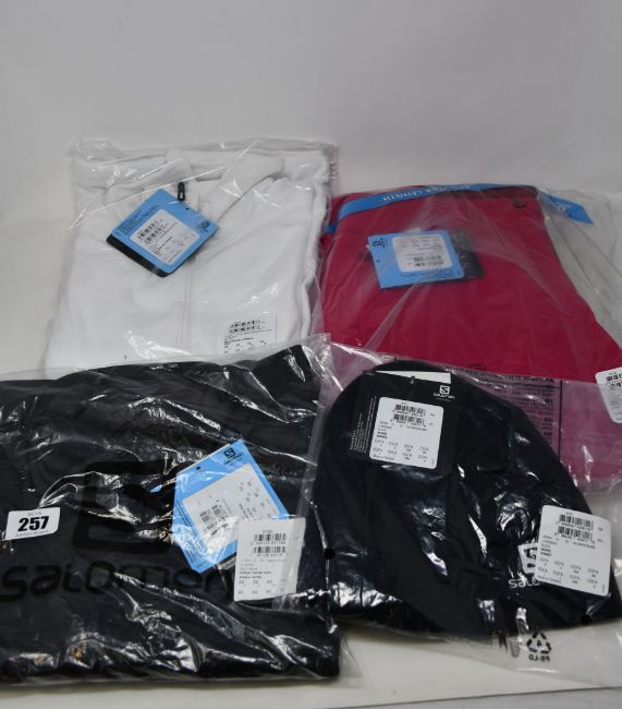 A women's as new Salomon Icemania pant (XXS), Warm Ambition half zip (XS), Transition mid layer (XS) and beanie hat.