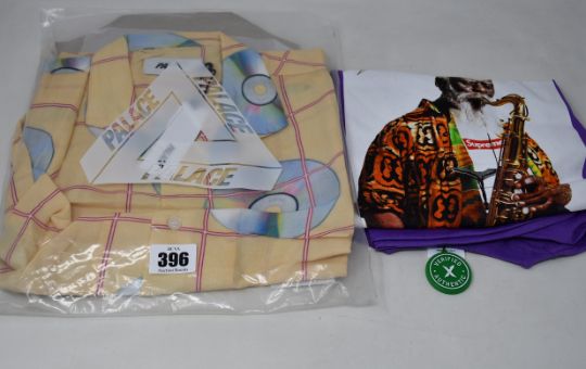 An as new Palace CD shirt (M) together with a Supreme Saxaphone T-shirt (L).