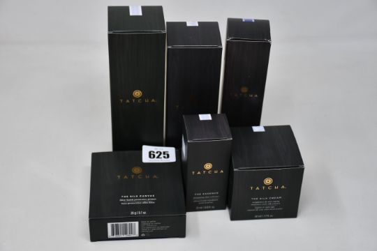 Six as new Tatcha beauty items to include The Rice wash cream cleanser (120ml), The Silk cream anti-ageing moisture-rich silk extract (50ml), The Silk canvas protective primer (20g), The Essence plumping skin softener (25ml), Pure cleansing oil (150ml) and The Essence plumping skin softener (150ml).