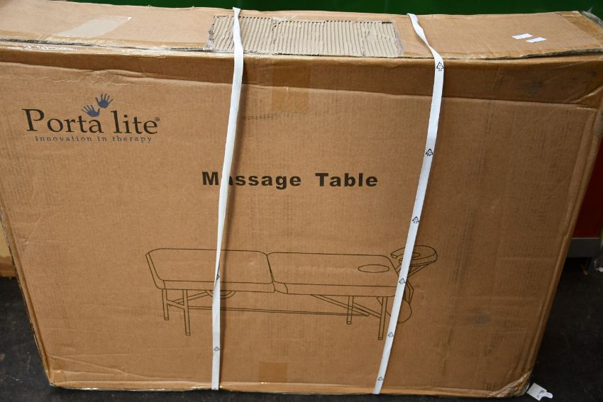 A boxed as new Porta Lite Advantage Massage Table.