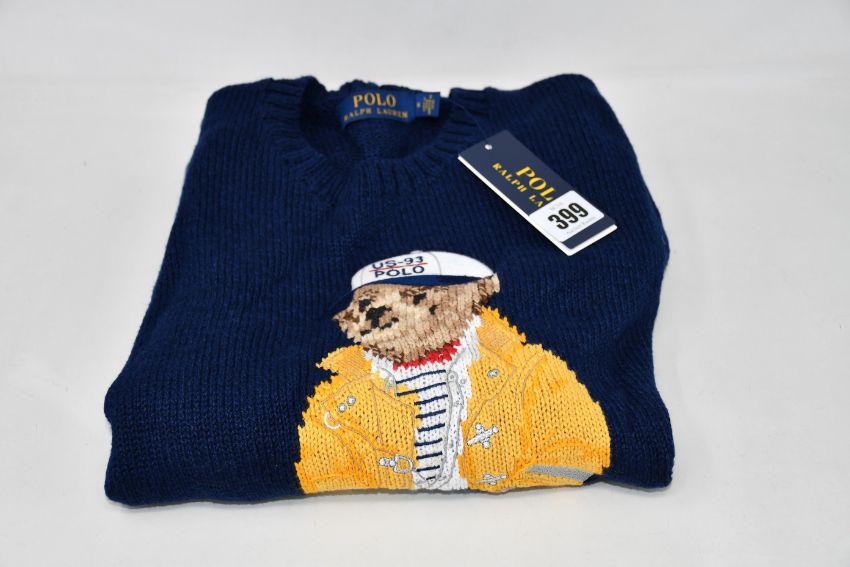 An as new Polo Ralph Lauren Yachting Bear crew knit navy sweater (M - RRP £240).
