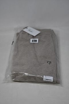 A pair of as new Chinti & Parker cashmere sweatpants in oatmeal with blue/cream ankle cuffs (M).